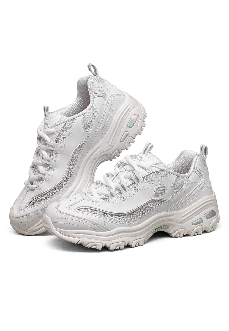 FeaturesKeep walking in classic sporty style and high-contrast detailing with the SKECHERS D’Lites shoe. Smooth leather, smooth lace and mesh fabric upper in a lace up sporty casual fashion sneaker with stitching and overlay accents. Air Cooled Memory Foam insole.FeaturesSide S metallic-finish logoFeaturesLace up front with metal top eyeletFeaturesMesh tongue with leather panel, D’Lites logo and rhinestone accentFeaturesPadded collar and tongueFeaturesSoft fabric shoe liningFeaturesAir Cooled Memory Foam cushioned comfort insoleFeaturesLightweight shock absorbing supportive midsoleFeaturesMidsole with contrast accent panels at heelFeaturesFlexible rubber traction outsoleFeaturesSmooth leather upperFeaturesLeather and lace overlay detailsFeaturesShoe Type: Lace-upFeaturesShoe Height: Low TopFeaturesUpper Material: Artificial Leather; Lace MeshFeaturesExperience cushioning and exceptional support with our signature comfort technology, Skechers Air-Cooled Memory Foam.FeaturesMesh fabric panels at front, side and tongue for cooling effectFeaturesComfortable EVA/RUBBER outsole.FeaturesLace up sporty casual walking sneaker designFeaturesBio-Dri for comfort.FeaturesKeep it cool with lightweight footwear that allows your feet to breathe.FeaturesStitching accentsFeaturesSoft lace overlay panels at toe and sidesFeatureswith subtle shiny finish for high-contrast lookFeaturesSmooth synthetic edging trim detail
