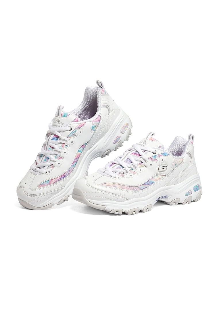 FeaturesGroove in wavy style with Skechers D’Lites® – Whimsical Dreams. This fashion lace-up features a leather and mesh upper with a Skechers Air-Cooled Memory Foam® insole and a marbled swirl print trim.FeaturesSkechers Air-Cooled Memory Foam® cushioned insoleFeaturesIconic Skechers D’Lites® designFeaturesShoe Type: Lace-upFeaturesShoe Height: Low TopFeaturesUpper Material: Split Leather; Artificial Leather; MeshFeaturesExperience cushioning and exceptional support with our signature comfort technology, Skechers Air-Cooled Memory Foam.FeaturesLace-up leather and mesh upper with marbled swirl printFeaturesComfortable EVA/RUBBER outsole.FeaturesLightweight shock-absorbing supportive midsoleFeaturesFlexible rubber traction outsoleFeatures1 1/4-inch heelFeaturesSkechers® logo detail
